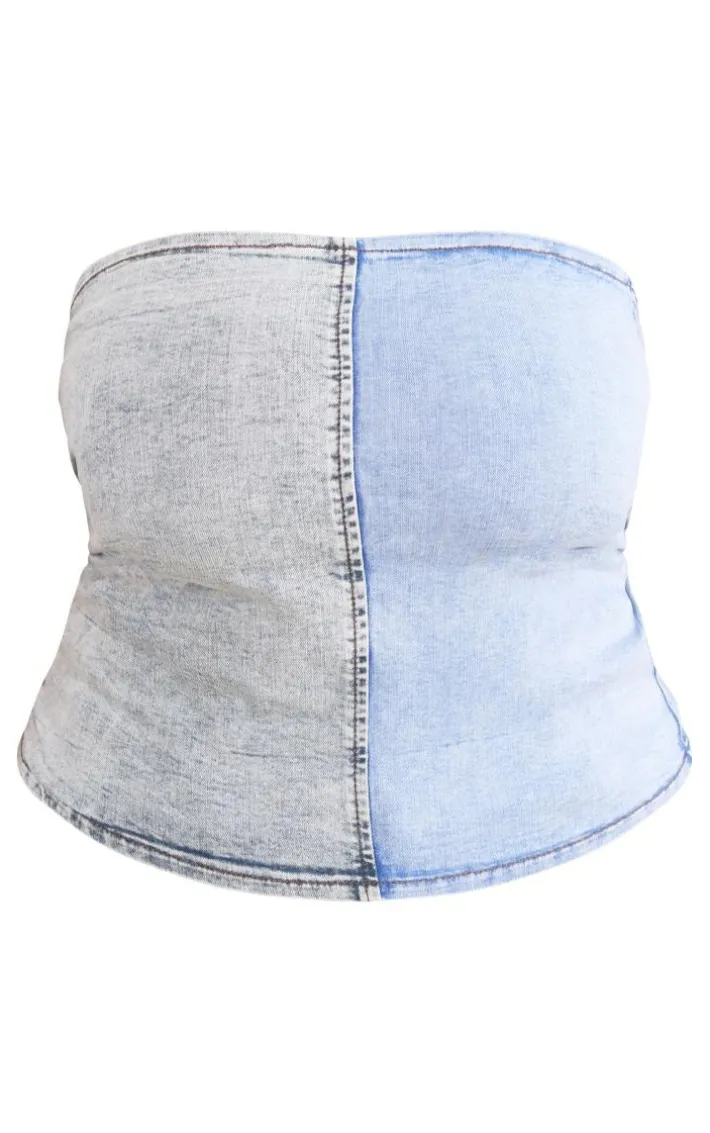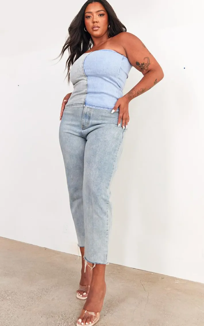 Nail the denim trend that we just can’t get enough of right now with this plus washed blue contrast stretch denim corset top. Brought to you in a washed blue hue stretch denim material with a contrasting design, a bandeau neckline and a figure-worshipping corset fit, how can you say no? For the perfect double denim look, style this plus top with your fave jeans, clear strap heels and a mini bag and get ready to gain all the compliments.