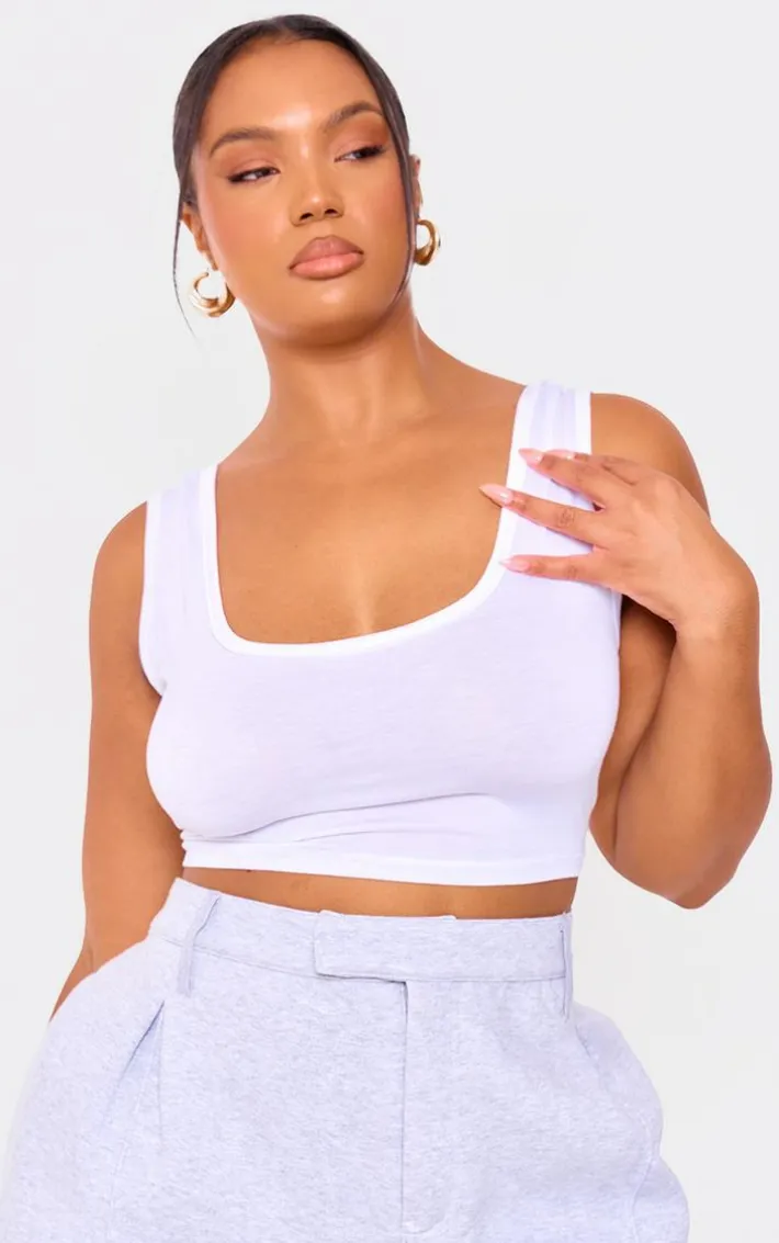 This cropped Vest is perfect for dressing up or down. Featuring a white jersey material with a square neckline and a cropped length. Team this with white biker shorts and barely-there heels for a night out.