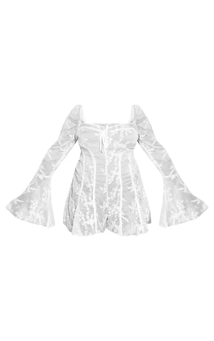 Bring all the luxe lace feels to your weekend look with this plus white lace binding detail flare sleeve romper. Made from a white hue lace material with long flare sleeves and binding detail, how can you not fall in love? Style this white romper with heels and gold hoops for a look that is sure to make heads turn this weekend.