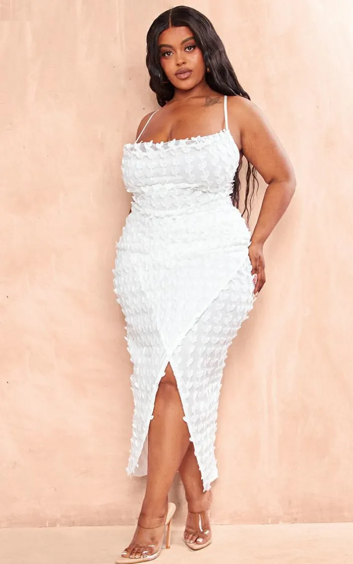 Make heads turn for all the right reasons in this plus white lace cowl neck lace up back midi dress. Brought to you in a white hue lace material with a lace up back design a cowl neckline and a flattering midi length, how can you resist? Style this midi dress with heels and statement accessories for an occasion look to be remembered.