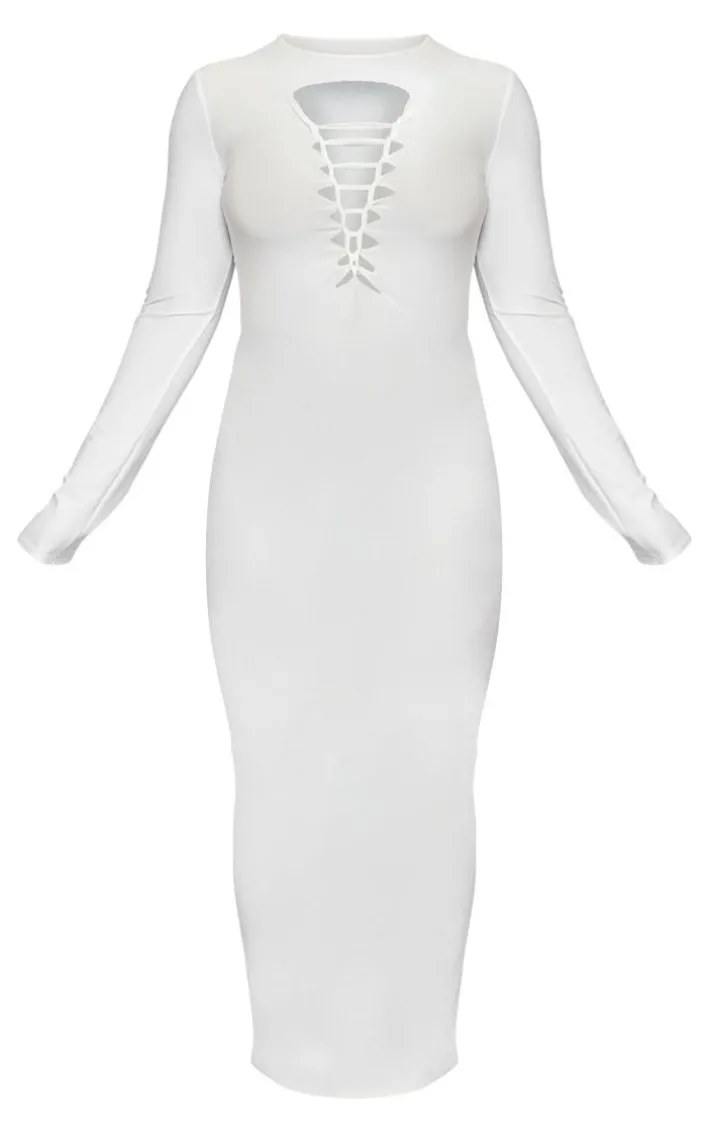 Get your glam on with this plus white laser cut long sleeve maxi dress. This maxi dress is brought to you in a white material with a cut-out front and long sleeves, what’s not to love? With it’s figure-hugging fit this maxi dress will have you looking effortlessly on-point this season. To complete the look style this dress with high heels and gold accessories for a look that we can’t stop loving.