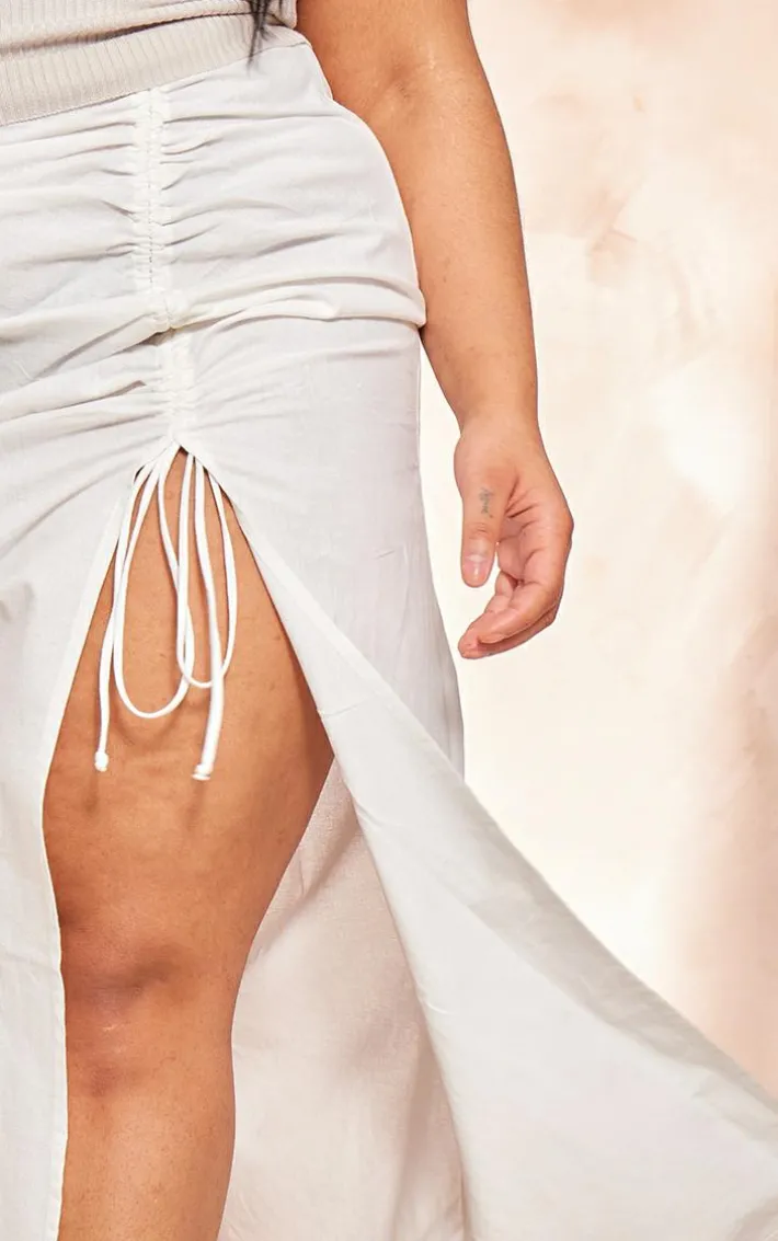 Take the stress out of weekend styling with this unreal plus white linen ruched maxi skirt. Brought to you in a white linen material with a ruched design, you really can’t go wrong with this maxi skirt. Team with at top, chunky sandals and gold accessories for a look that will have eyes on you for all the right reasons.