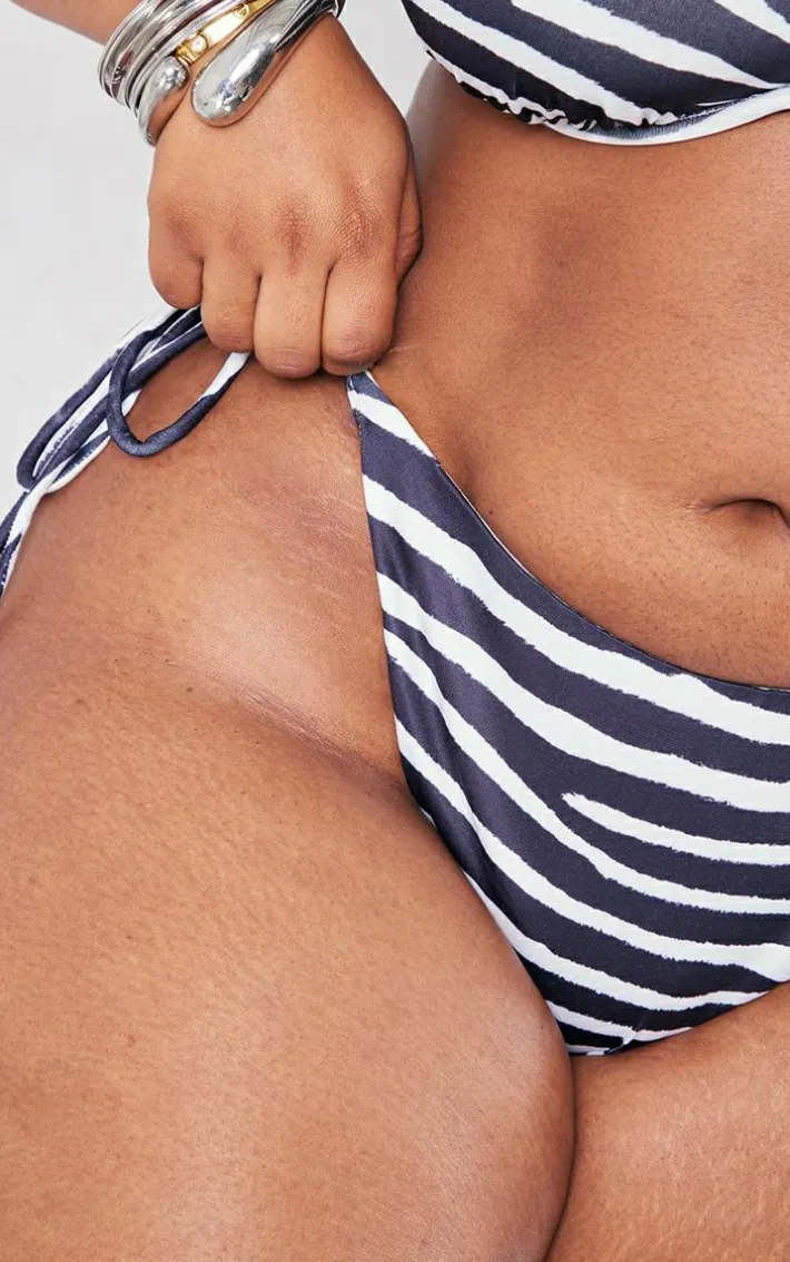 Feed your new season style need with these plus zebra tie side bikini bottoms. These bikini bottoms are perfect for those beach days when you still want to look chic. These bikini bottoms are made from a zebra print design with a tie side detail, we are seriously obsessed. Pair with the matching bikini top and some comfy sandals to complete the look.