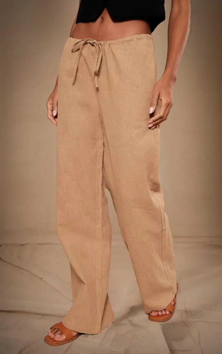 You need these premium beige linen drawstring straight leg pants. Brought to you in a beige linen material with a drawstring detail and a straight leg design, what more could you want ? These pants are all you need to earn all the styling points. Team with a pair of sandals and your fave vest for a fool proof finish.