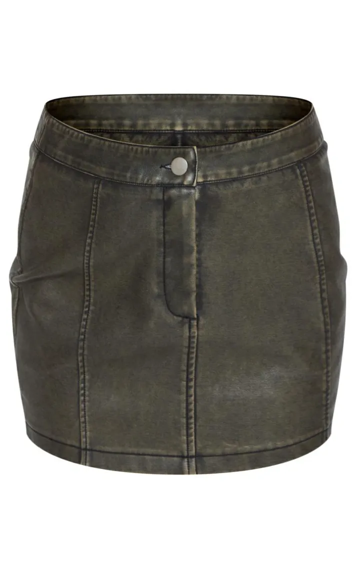 Bring all the attitude to your new season wardrobe with this brown washed faux leather seam detail mini skirt, we’re in love. This skirt features a brown washed faux leather material with seam detailing and a mini length, everyone will be obsessed. Team this mini skirt with the matching jacket, clear slip-on heels and hoop earrings for a fool proof finish.