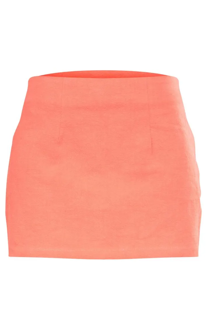 Say hello to your new season staple with this premium coral linen micro mini skirt. Made from a premium coral linen material with a micro mini length, what more could you want? This micro mini skirt will be showing off your shape in all the right places. What more could you want ? Style with the matching top and some mule heels, gold hoops and a statement bag for a look that have you being the topic of everyone’s conversation.