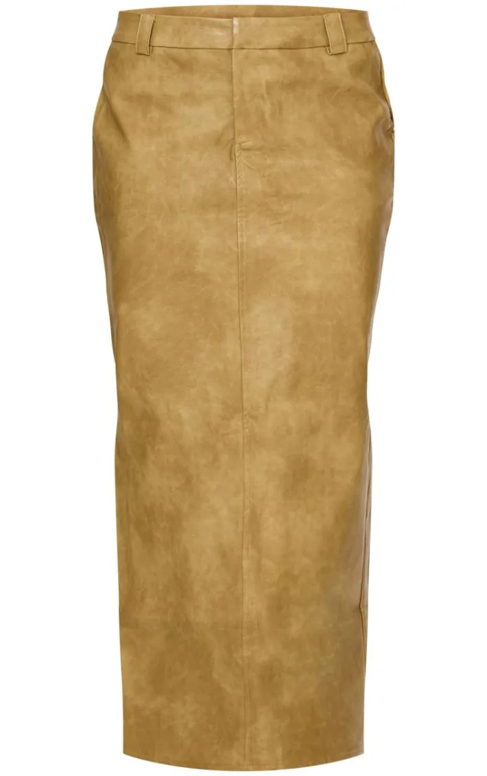 Found some last-minute weekend plans and need an unreal ‘fit? Then we have you covered with this styling staple, an olive washed faux lather maxi skirt. With an olive faux leather washed material with a maxi length, we’re obsessed. Work your styling techniques and add atop, heeled boots and accessories for a weekend-worthy finish that will gain all the likes.