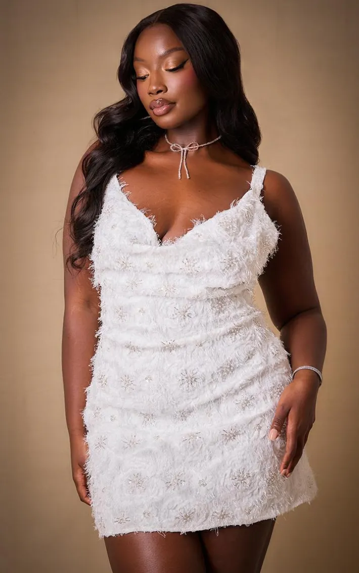 When the dress code calls for glam, we’ve got your occasion look covered with this premium plus white sequin embroidered cowl neck shift dress. Brought to you in a white hue material with a cowl neckline and sequin embroidered detailing for that extra touch of luxe, how can you go wrong? Style this shift dress with your highest heels and some accessories to instantly elevate the look.