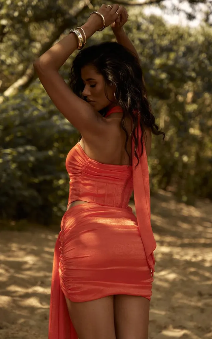Turn up the heat this weekend with this premium red satin halterneck corset. Its red satin material will help you stand out from the crowd as well as add all the glam vibes to your look. This corset top will bring a fiercely feminine touch to your weekend ‘fit with its halter neckline. Style with the matching mini skirt, clear heels and a mini bag for a weekend-worthy finish that everyone will be jealous of.