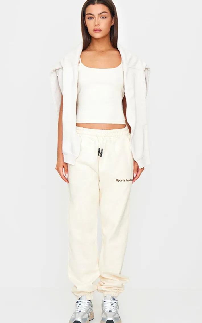 Elevate your off-duty wardrobe with these premium sand sports academy puff print oversized sweatpants. Made from a sand hue material with a ‘Sports Academy’ print and an oversized fit, what more could you want? Team these oversized sweatpants with a neutral Vest top and your fave kicks for a finish that will earn all the styling points.