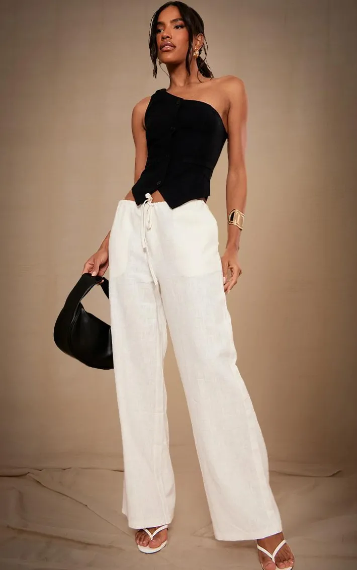 Set major trends with these premium white linen drawstring straight leg pants. Brought to you in a white linen material with a drawstring detail giving you a flattering fit like no other. Its straight leg design gives you a versatile fit like no other. Team with a basic tee and your fave accessories for a look everyone will be obsessing over.