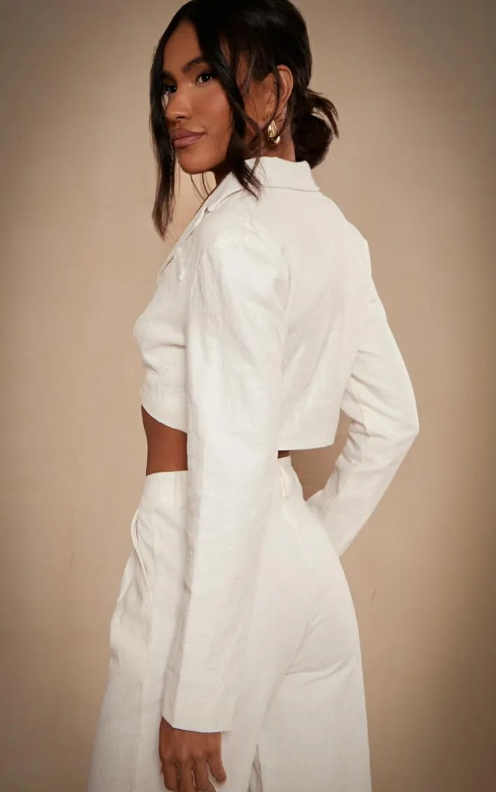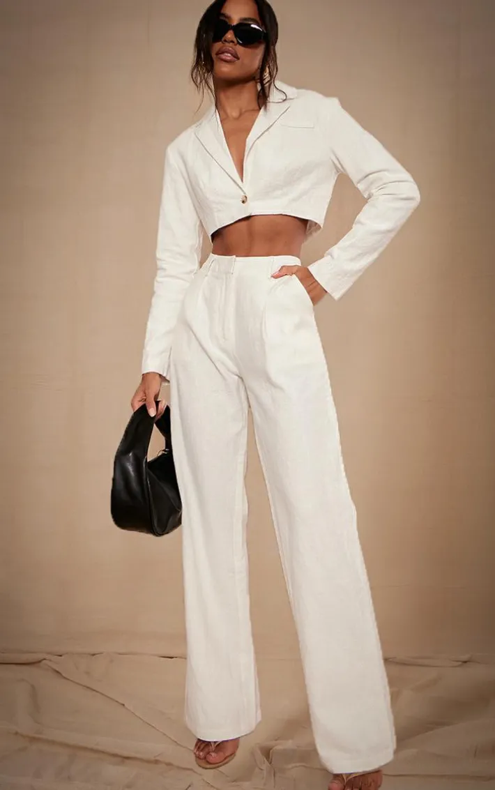 Looking effortless has never been more simple than with this premium white linen look cropped blazer. Brought to you in a white linen look material with a cropped length and a relaxed fit, you’ll be reaching for this blazer whatever the occasion. Just add the matching pants, sandals and gold statement earrings for a look we just can’t get enough of.