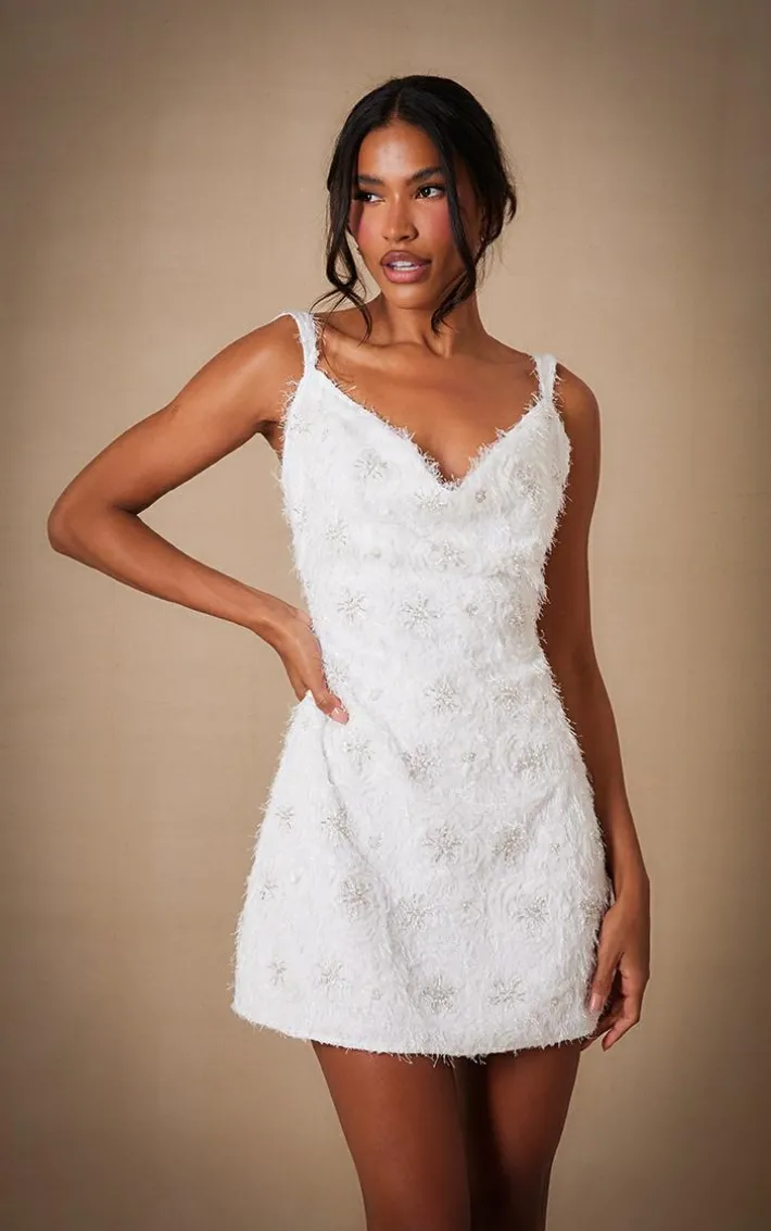 Go for all the glam vibes this season with this unreal white sequin embroidered cowl neck shift dress, you’re sure to be at the center of attention. This dress features a white material with sequin detailing and a cowl neck design. Pair with heels and your fave accessories for a flawless finish.