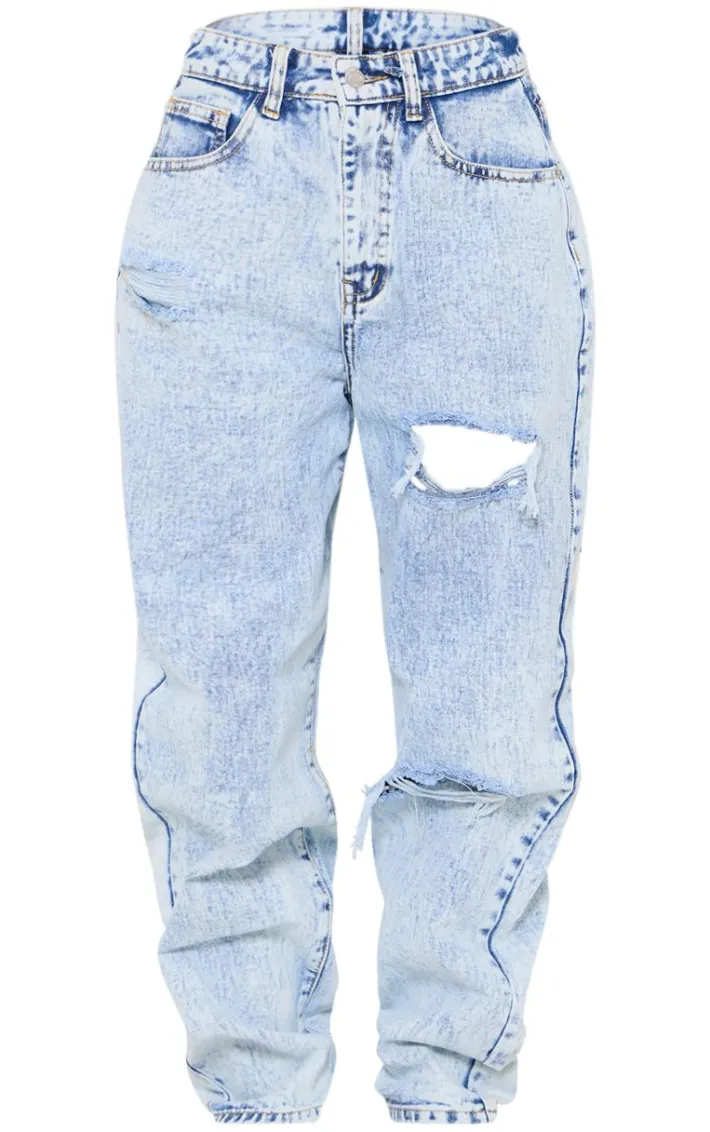 We are obsessed with these PrettyLittleThing acid blue wash open knee boyfriend jeans for your new season collection. Brought to you in an acid blue wash material with open knee detail, pockets and a boyfriend style, these jeans will be at the top of your hit list. Just add a cropped t shirt and fresh kicks for a simple but chic finish.