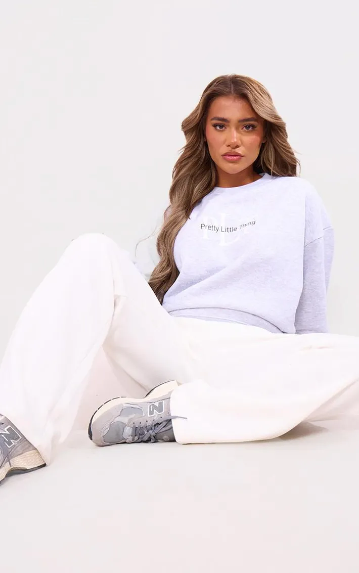 Say hello to your new season staple with this PrettyLittleThing ash grey graphic oversized crewneck sweatshirt. Brought to you in an ash grey material with a ‘PrettyLittleThing’ print across the front, how could you say no? With an oversized fit and a crewneck detail, you won’t be able to resist. Style effortlessly with the matching leggings for a look that will turn heads for all the right reasons.