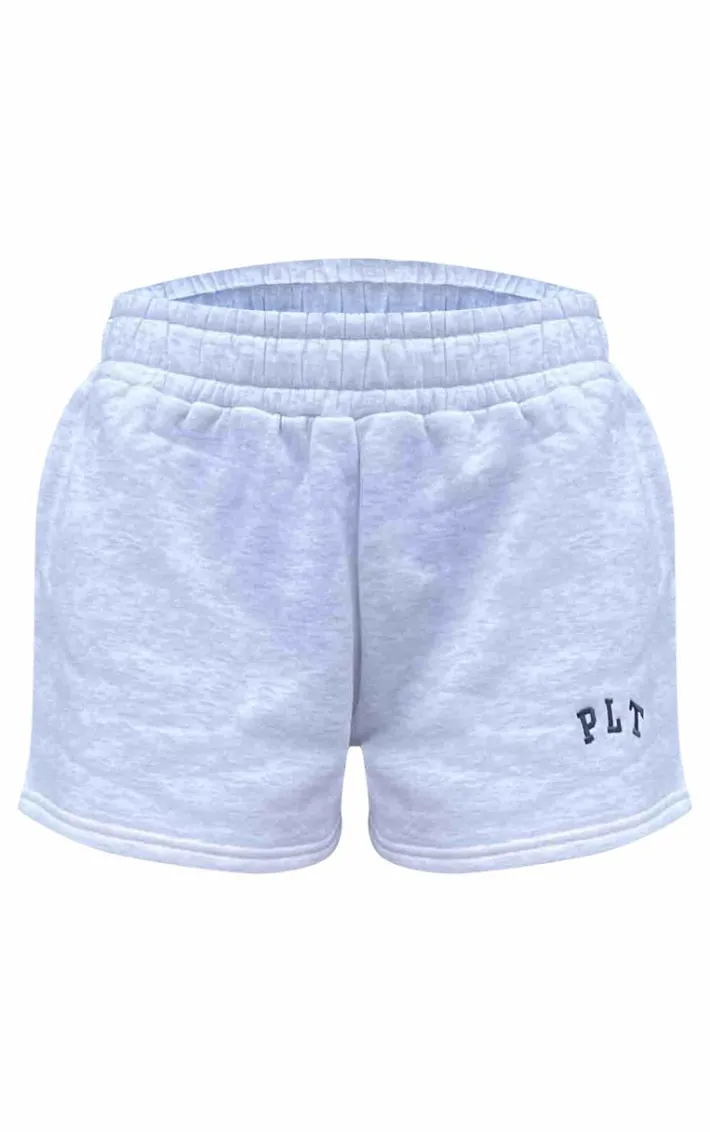 Level up your off-duty wardrobe with these PrettyLittleThing ash grey logo sweat shorts. Brought to you in an ash grey material with a ‘PLT’ logo and a comfy fit, how could you say no? Whether it’s a chilled day at home or you’re running your everyday errands these shorts are the one for you. Level up the look and add the matching top, box-fresh kicks and your everyday essentials for the ultimate combo.