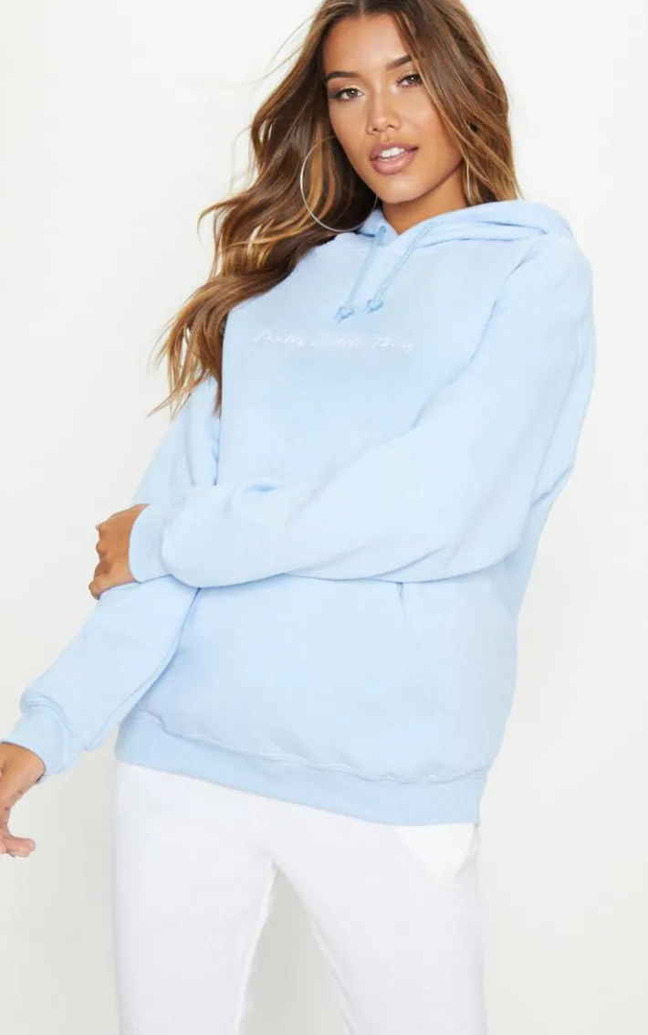 Every doll needs this PrettyLittleThing baby blue oversized sweat basic hoodie in their collection doll. With a seriously on-trend baby blue sweat material, a PrettyLittleThing graphic detail, and an oversized fit, what more could you ask for? This hoodie is a must-have for all your off-duty days doll whether you’re running errands or doing nothing. Simply add white leggings and chunky sneakers for a look that everyone will be obsessed with.