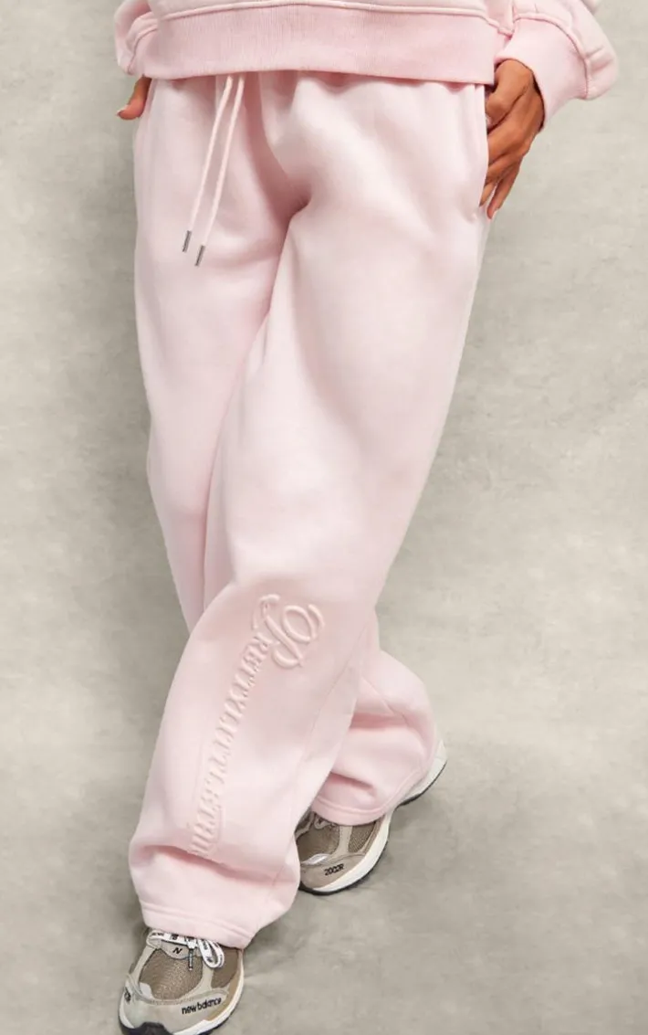 Keep it casual with these PrettyLittleThing baby pink embossed Graphic straight leg sweatpants. Brought to you in a baby pink material with an embossed Graphic design and a straight leg fit, we are seriously obsessing over these sweatpants. Team with the matching jacket, a cropped tee and your fave sneakers for a look everyone is loving.
