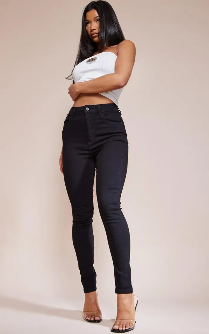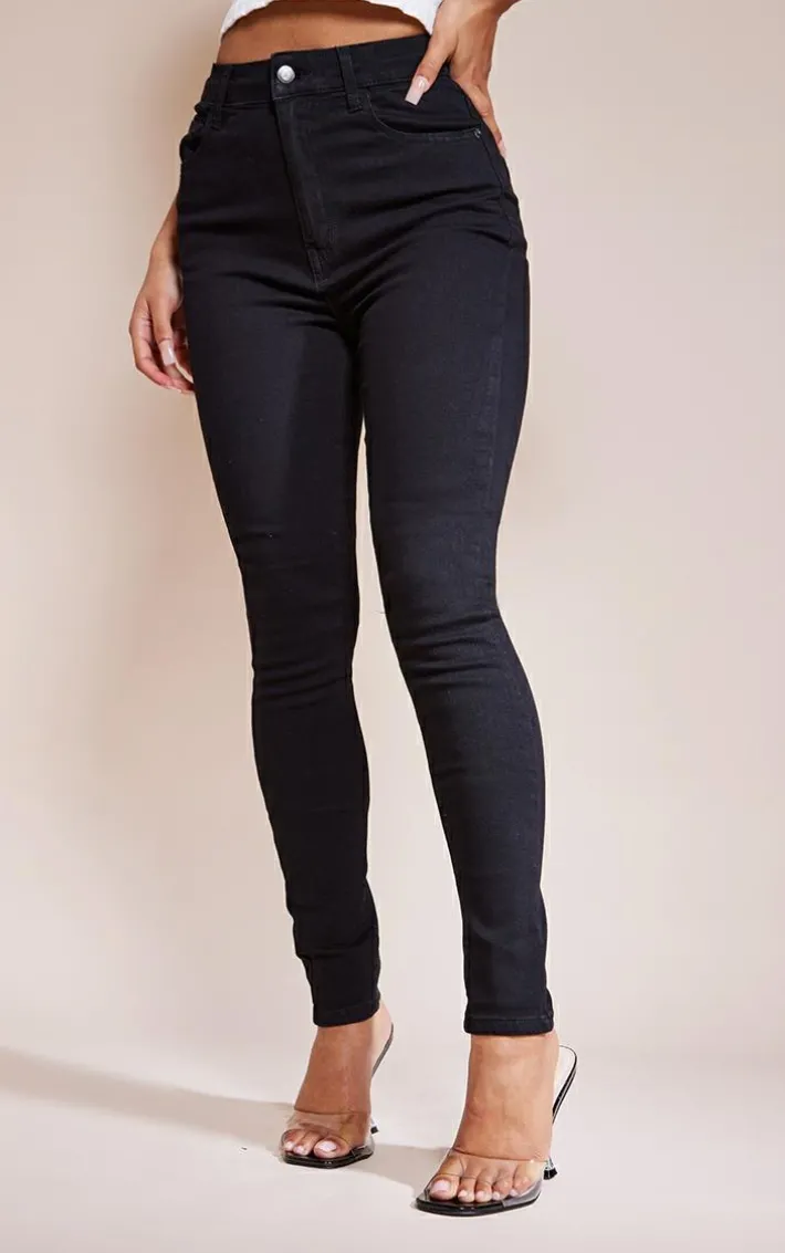 These jeans are sure to flaunt your figure. Featuring a black denim material with a skinny fit and a classic 5 pocket design. Team these with a denim top and barely-there heels for a double denim look we are crushing on.