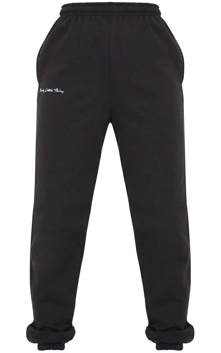 Nail cool, calm and collected with these graphic style comfy bottoms. Featuring a black fabric with an elasticated waistband and an embroidered ‘PrettyLittleThing’ graphic, team this with the matching crop top and fresh kicks to complete the look.