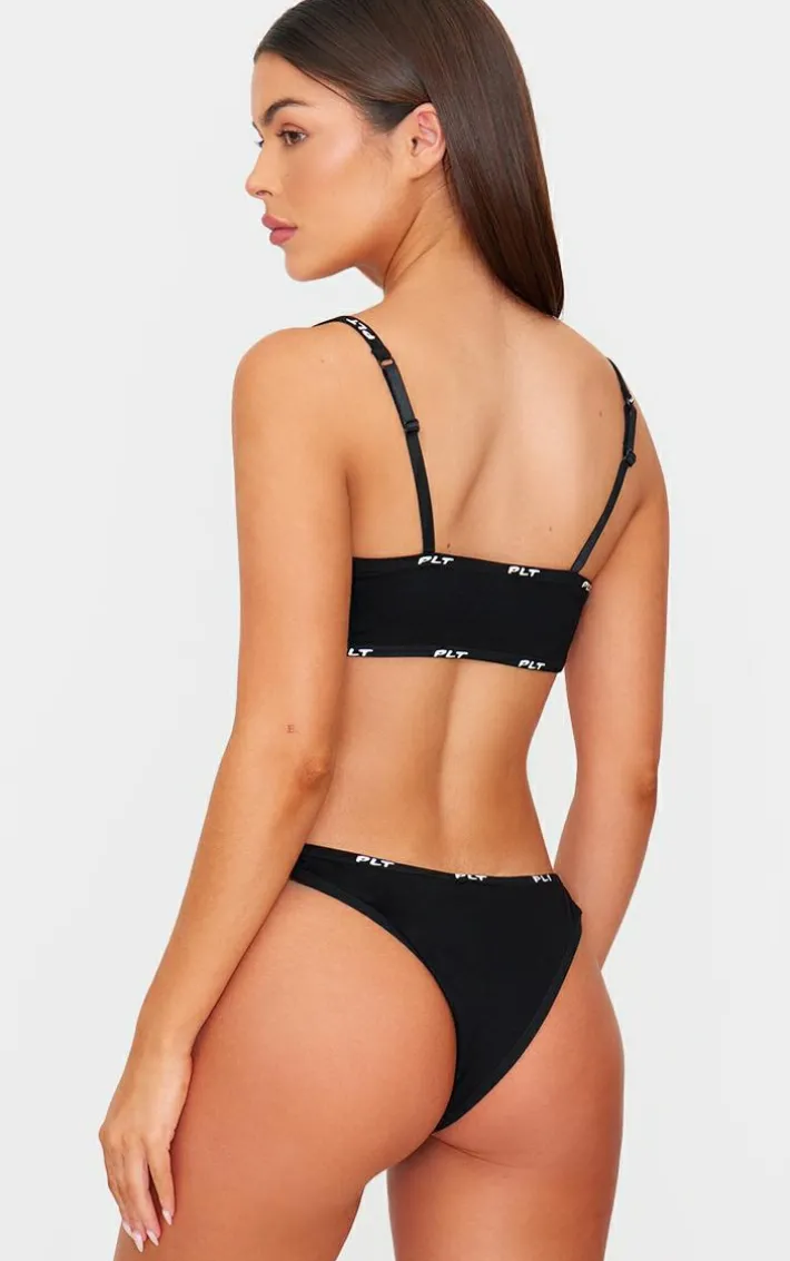 Bring all the comfy vibes to your everyday essentials with this PrettyLittleThing black jersey bralette. Brought to you in a black jersey material with a ‘PrettyLittleThing’ logo, how can you resist? Pair this black bralette with the matching bottoms and style under your outfit of the day for a look we’re loving.