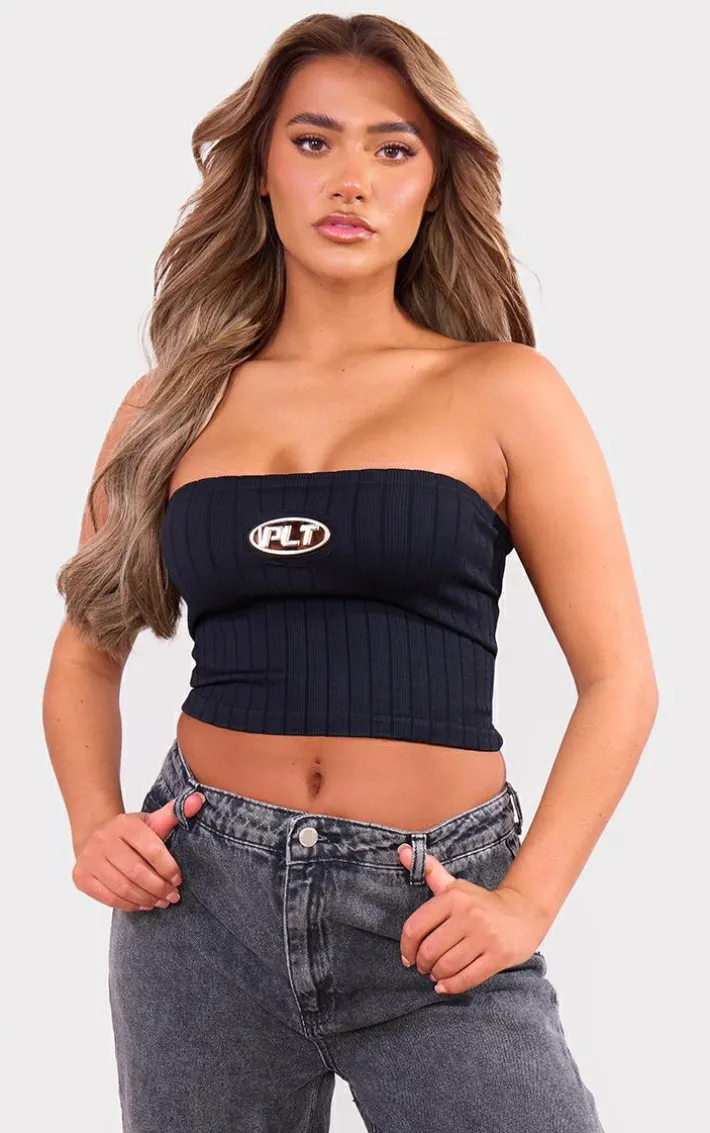 Make everyday styling simple with this must-have PrettyLittleThing black metal badge snatched rib bandeau top, it is sure to solve all your what-to-wear dilemmas. This top is made from a black snatched rib material with a ‘PrettyLittleThing’ metal badge detail and a bandeau style, how could you say no? Team with cargo bottoms, chunky sneakers and a faux leather jacket for a cool, off-duty vibe.