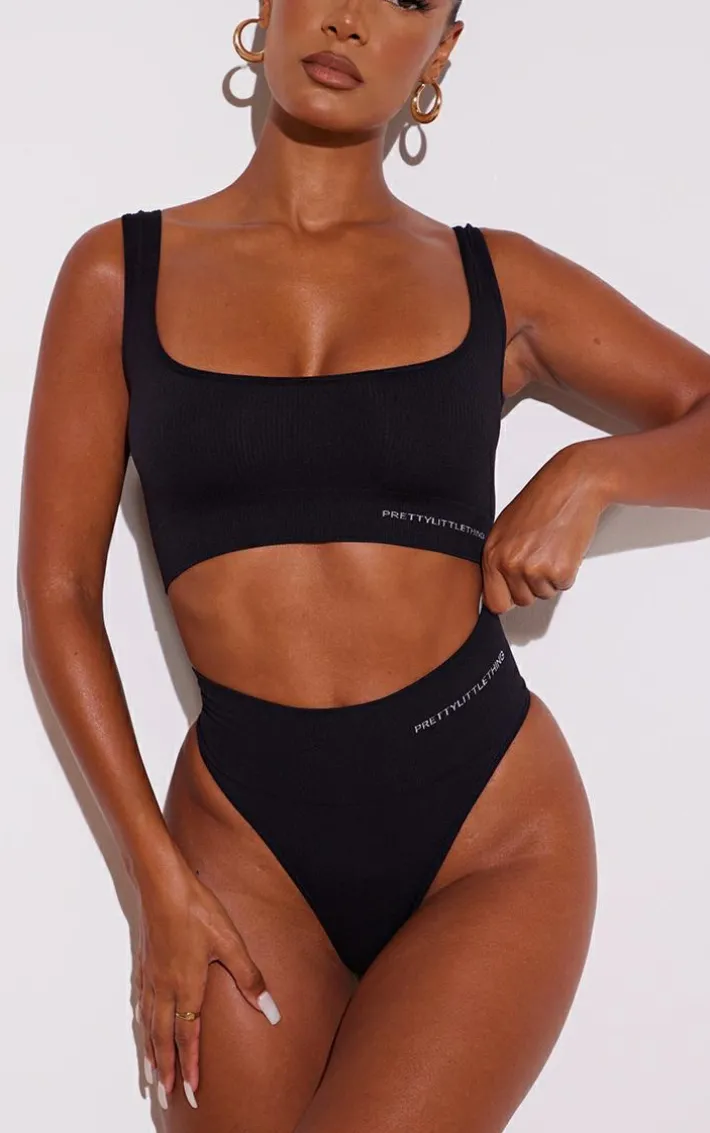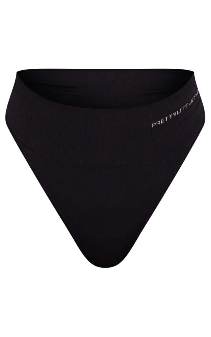 This thong is a must-have piece for your lingerie collection. Featuring a black material with a ‘PrettyLittleThing’ print and a high waisted fit. Style with the matching bra for a comfy lingerie combo.