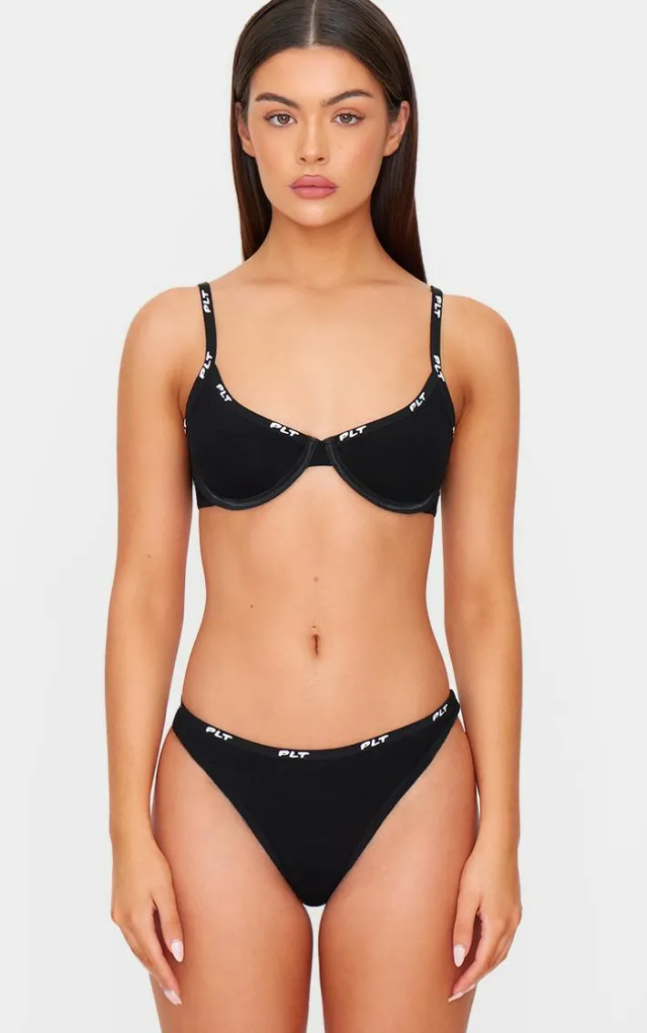 Upgrade your everyday essentials with this PrettyLittleThing black underwired jersey bra. Brought to you in a black jersey material with an underwired design and a ‘PrettyLittleThing’ logo, how can you say no? Simply pair this black bra with the matching bottoms and style under your outfit of the day.
