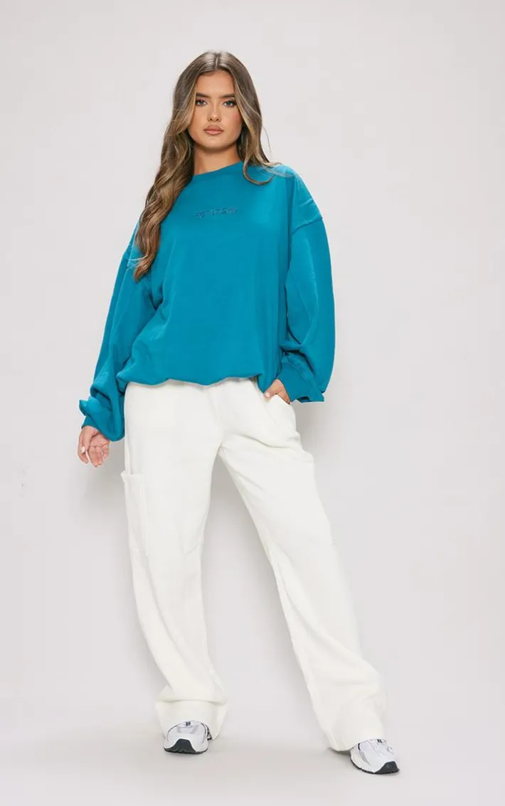 Add some bright hues to your new season wardrobe with this PrettyLittleThing blue embroidered gathered hem Sweatshirt, it’s a definite yes from us whatever your plans. With a blue material, a contrasting ‘PrettyLittleThing’ embroidered design and a gathered hem, you’ll be obsessing over this Sweatshirt. Team with some comfy wide leg bottoms and chunky sneakers for a look everyone will want.