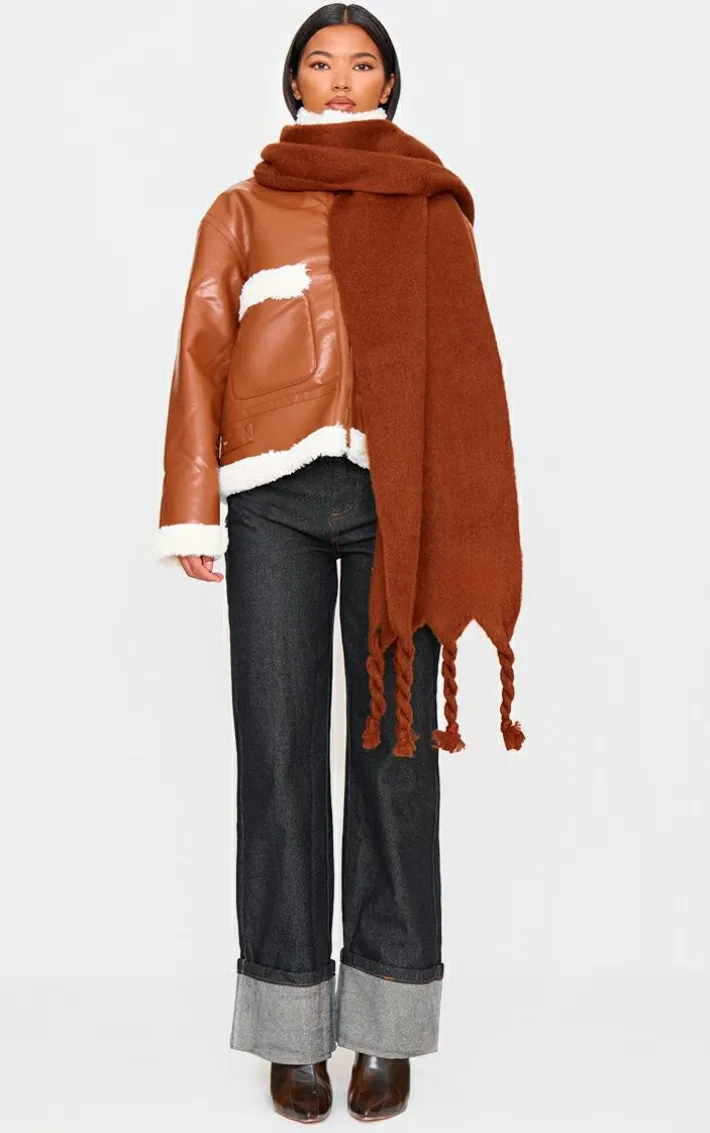 Get ready to nail major trends this season with this PrettyLittleThing brown tab fuzzy blanket scarf, we’re seriously in love with this dreamy piece. With a brown fuzzy material, a ‘PrettyLittleThing’ tab detail and a blanket style, this scarf just went straight to the top of your wish list. Style it with your fave outfit of the day for an instant chic finish.