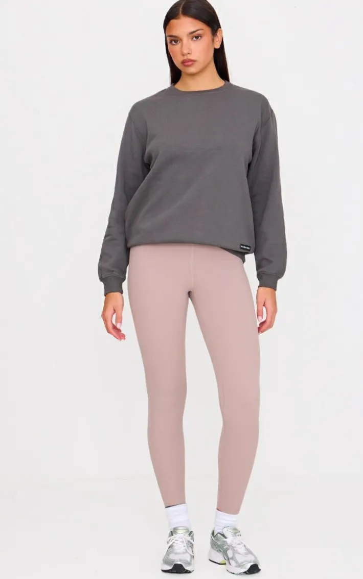 Give your off-duty look with this must-have sweatshirt. Featuring a charcoal material with a PrettyLittleThing badge and a loose fit. We love this teamed with the matching bottoms and fresh kicks to complete the look.