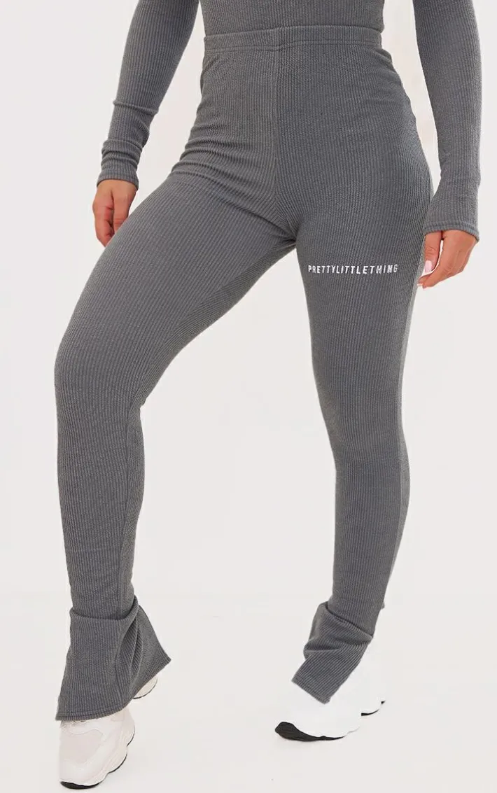 Amp up your off-duty look with these leggings. Featuring a charcoal ribbed material with a ‘PrettyLittleThing’ print and a split hem design, we’re obsessed. Wear with the matching bodysuit, box-fresh kicks and jacket to complete the look.