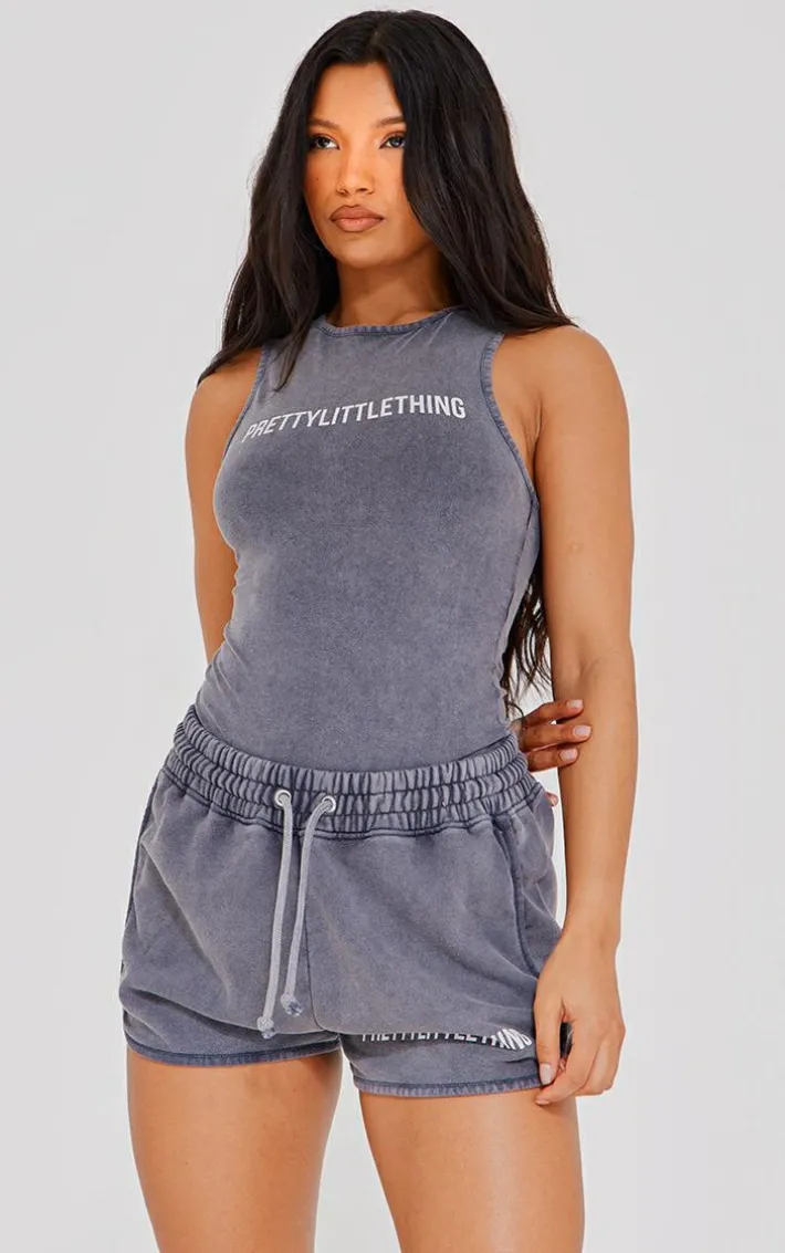 Take on those off-duty days in style with these PrettyLittleThing wash high waisted runner shorts. Brought to you in a charcoal wash material with a high waisted design and a ‘PrettyLittleThing’ logo, how can you resist? Pair these runner shorts with the matching bodysuit and your go-to pair of sneakers for a seriously comfy combo you will be reaching for again and again.