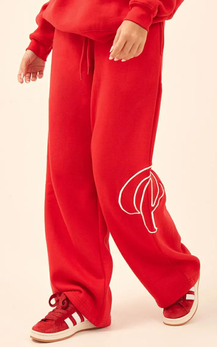 Add some of this season’s must-have hue to your wardrobe with these PrettyLittleThing cherry red logo embroidered straight leg sweatpants, they’re perfect for your next off-duty day. With a cherry red material, a ‘PrettyLittleThing’ embroidered design and a straight leg fit, you’ll be adding these sweatpants straight to your basket. Team it with the matching top, chunky sneakers and a shoulder bag for a combo we’re crushing on.