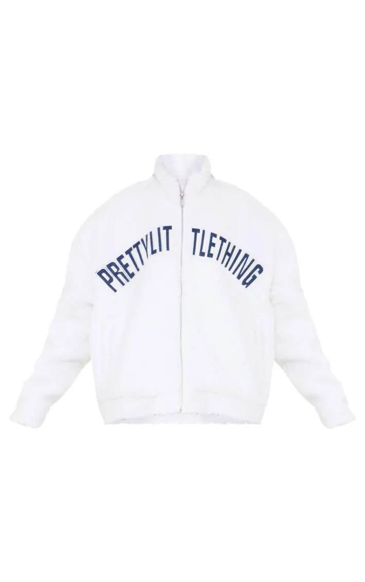 Wrap up warm this season with this PrettyLittleThing cream Graphic zip up fleece jacket. Brought to you in a cream fleece material with a Graphic design and a zip up fastening, we are seriously obsessed. Team with a pair of wide leg pants, your fave cap and your go-to sneakers to finish off the look everyone is talking about.