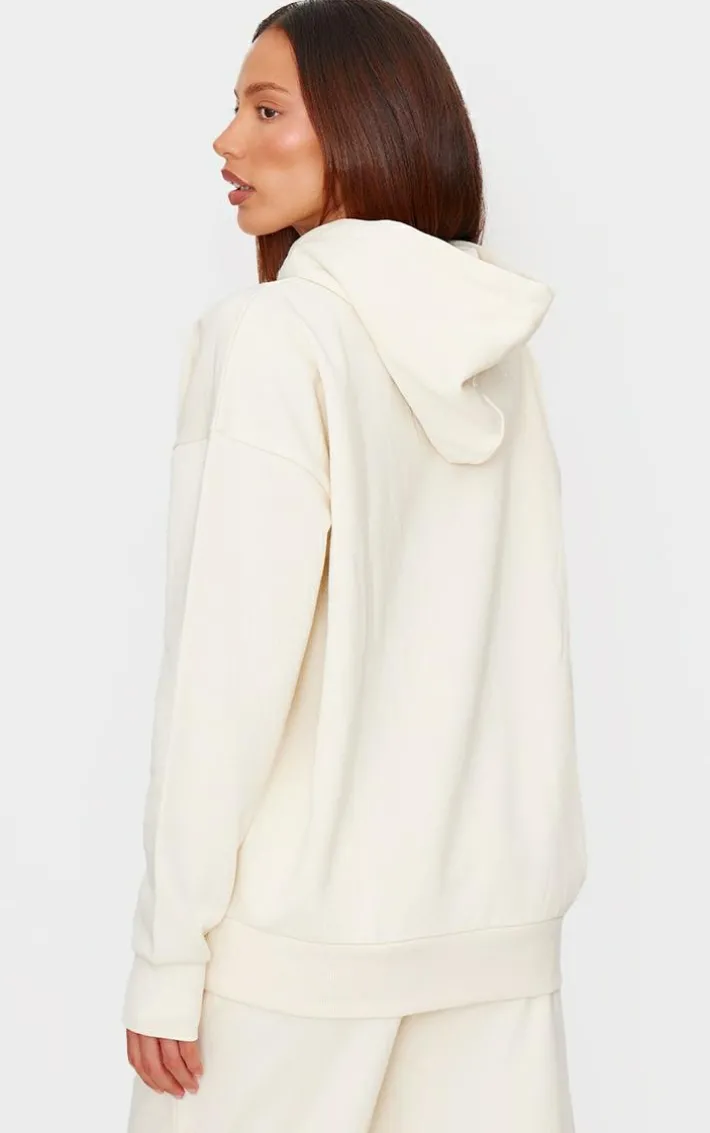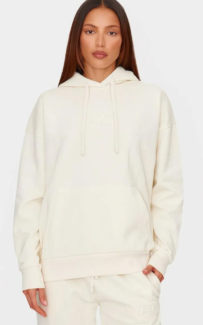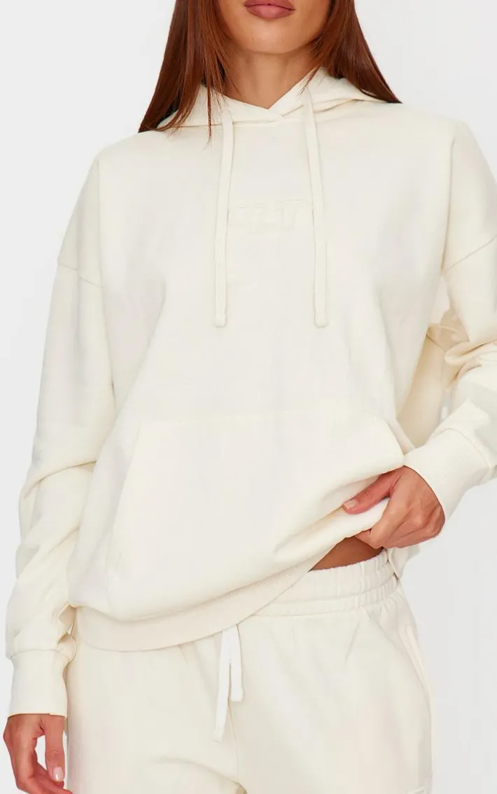 Level up your off-duty wardrobe with this PrettyLittleThing cream premium embossed oversized hoodie. brought to you in a crema premium material with an embossed design and an oversized fit, this is sure to become your new go-to. team with the matching sweatpants and your fave hat to earn all the styling points this season.