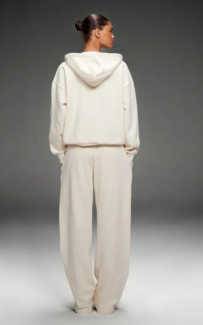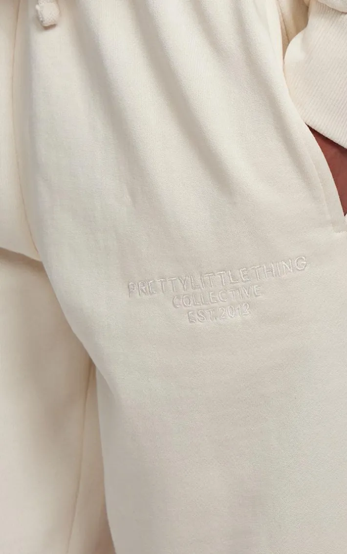Set major trends this season with these PrettyLittleThing cream premium embroidered oversized wide leg sweatpants. Brought to you in a cream premium material with an embroidered design and an oversized fit, what more could you want? These wide leg sweatpants will have you feeling comfy all season long. Team with the matching hoodie, a pair of sneakers and maxi coat for a fool proof finish we are obsessing over.