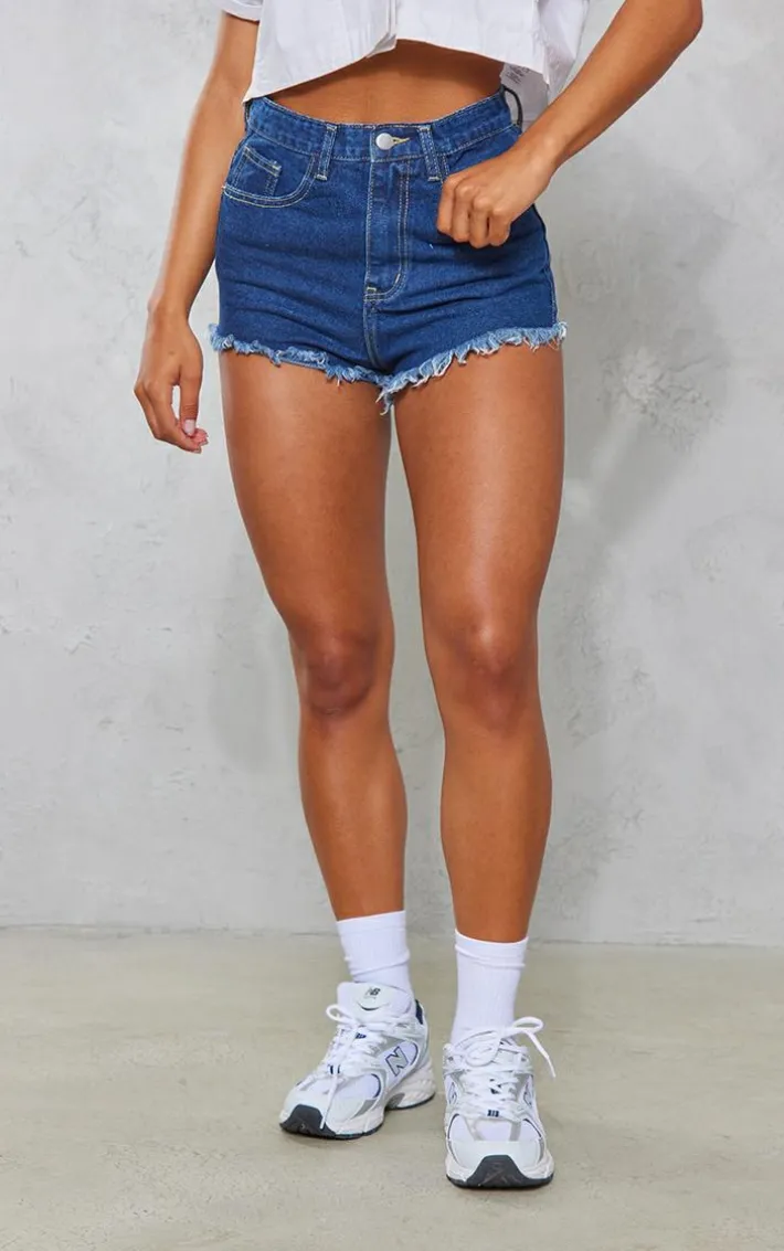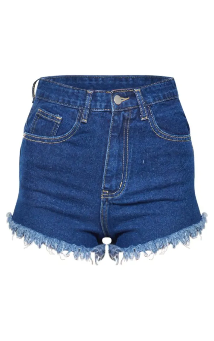 This season denim shorts are essential and we are loving this style. Featuring a dark blue wash denim with distressed detailing, team these with a crop top and wedges for the perfect vacay look.