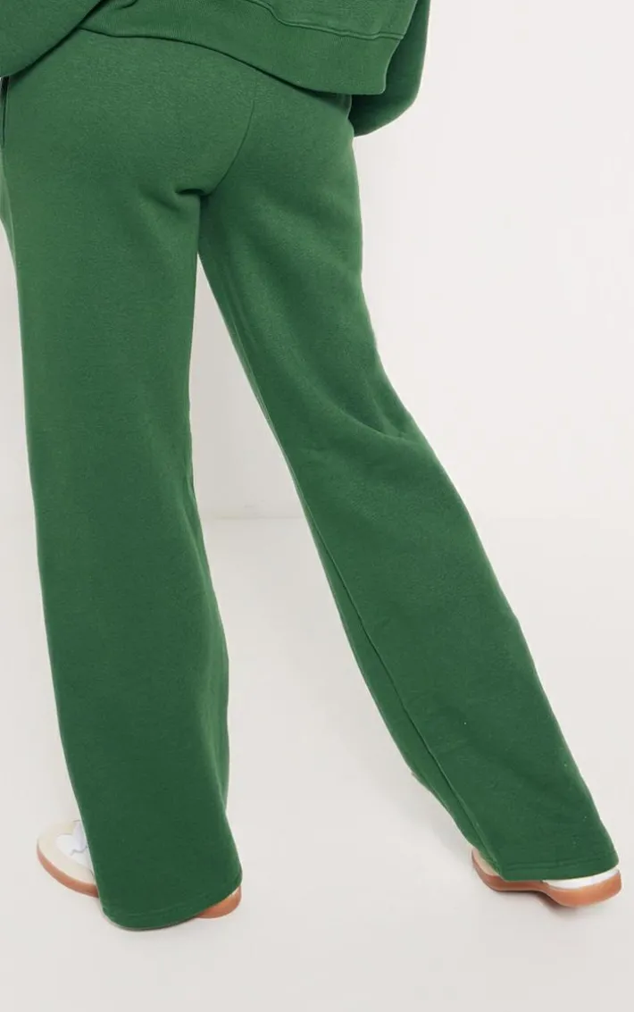 Switch up your new season style game with these PrettyLittleThing forest green logo embroidered wide leg sweatpants, your off-duty fit is finally sorted. These sweatpants are made using a forest green material with an embroidered logo design and a wide leg fit, what more could you want? Team these wide leg sweatpants with the matching Sweatshirt, your fave accessories and box fresh kicks for an instant chic finish.