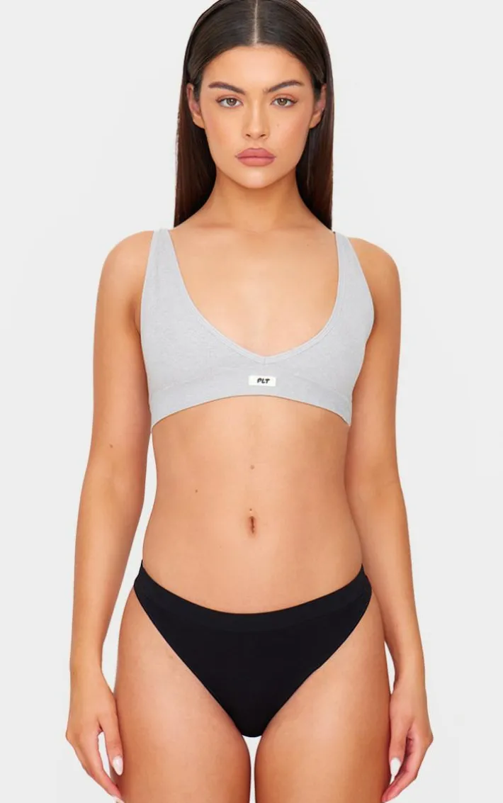 Make styling easy with this PrettyLittleThing grey badge plunge seamless bra. Brought to you in a grey hue seamless material with a badge detail and plunge neckline, this bra is all the new you need. Style under your fave outfit of the day for a comfy finish.