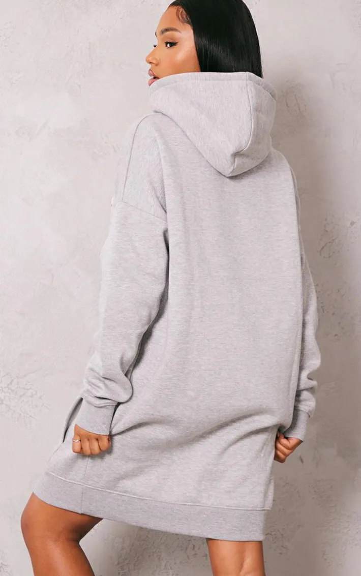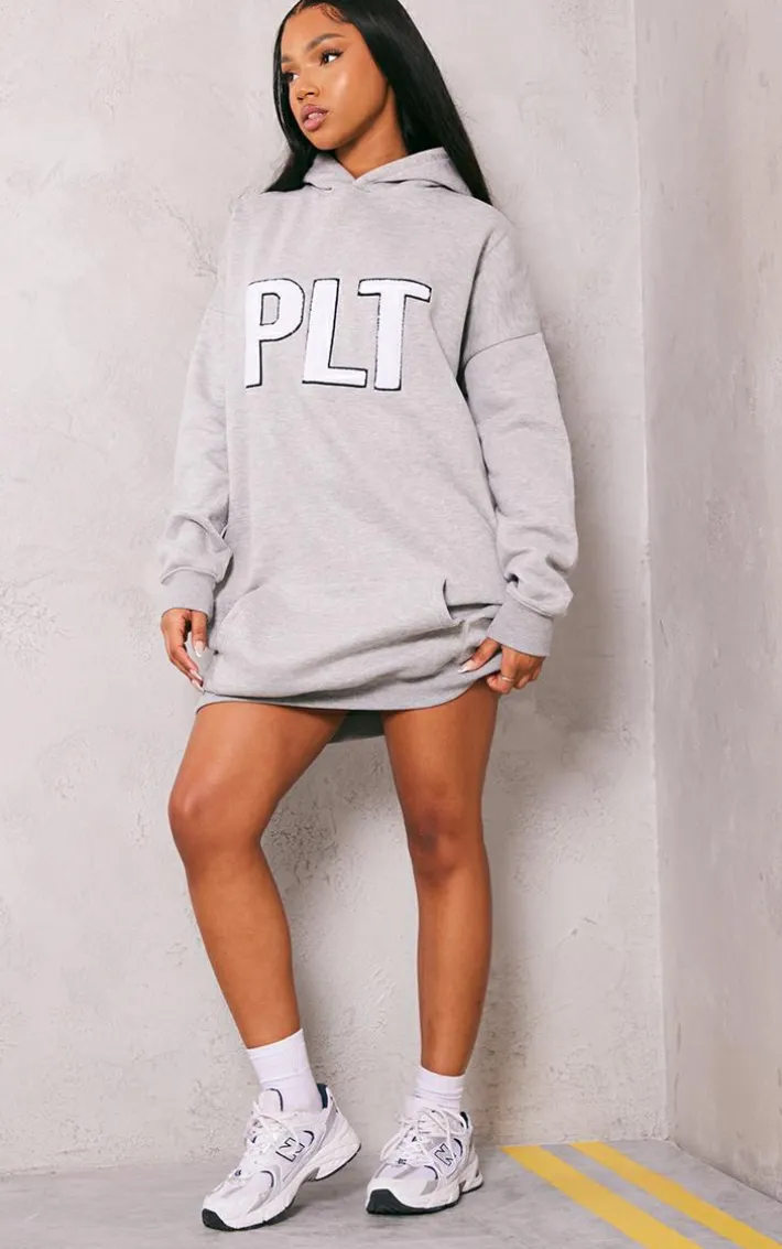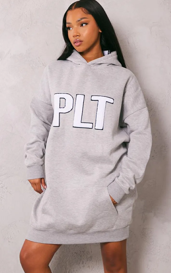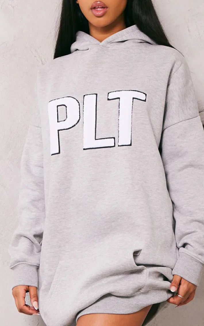 Keep your new season wardrobe comfy but chic with this PrettyLittleThing grey marl borg graphic sweater dress, it is everything we’re loving for your next chilled day and beyond. This sweater dress includes a grey marl material with a ‘PrettyLittleThing’ borg graphic and a relaxed fit, how could you say no? Pair with some chunky sneakers and some ankle socks for an effortlessly chic finish.