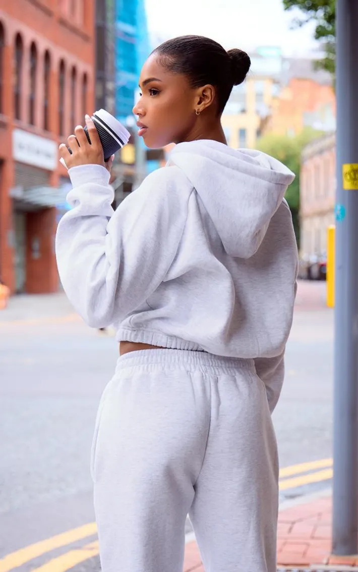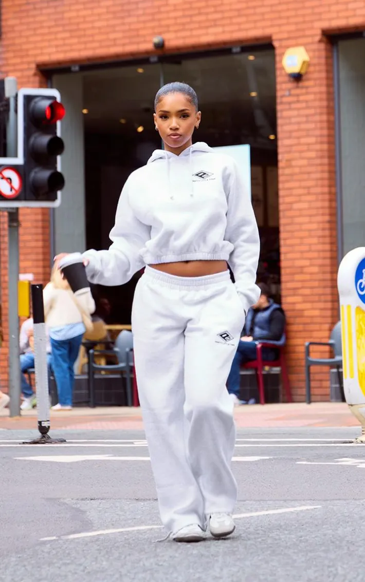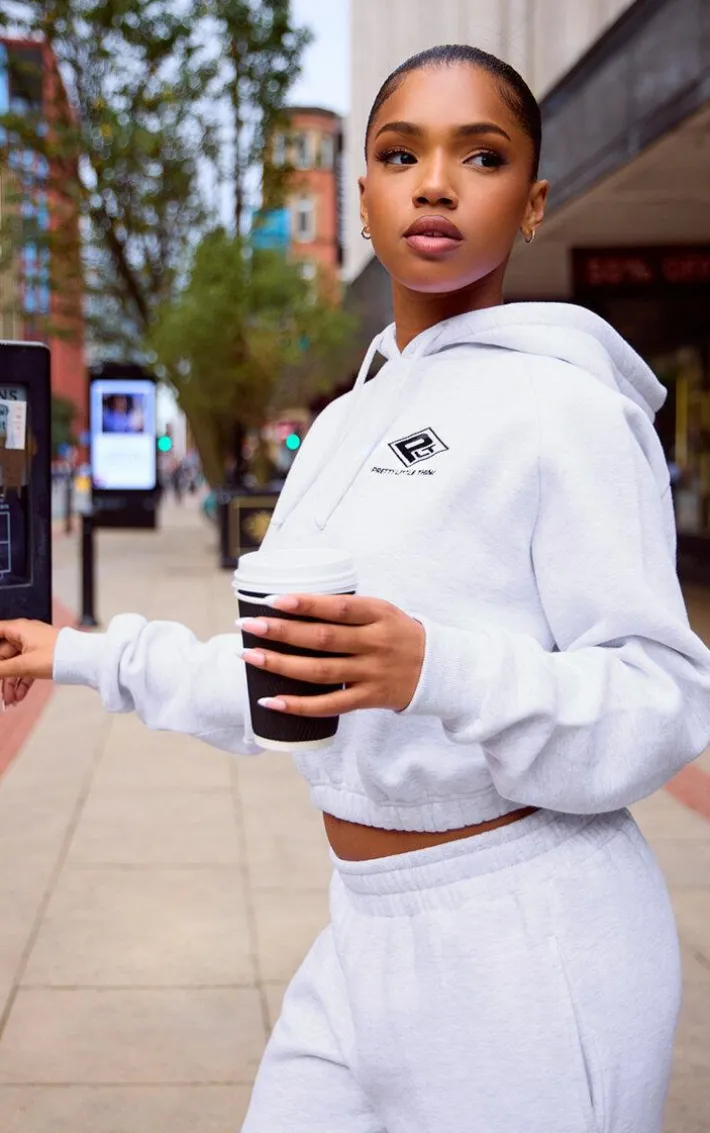 Your weekend coffee run is calling out for this PrettyLittleThing grey marl embroidered cinched waist cropped hoodie. With its cropped length, grey marl fabric and cinched waist design, what more could you want. This cropped hoodie also features a ‘PrettyLittleThing’ embroidered logo. Just add the matching sweatpants, sneakers and silver hoops to complete the look.