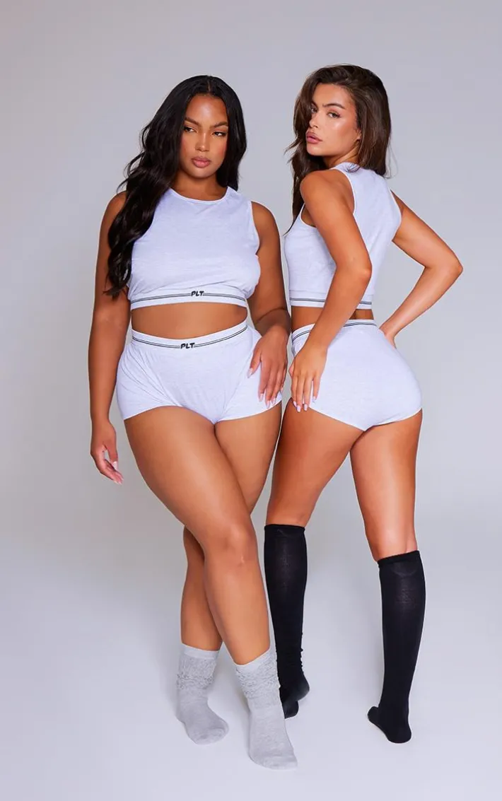 Look all kinds of dreamy in this PrettyLittleThing grey marl vest and short PJ set. Brought to you in a grey marl hue material with a cropped vest and shorts, this PJ set is calling your name. Style with fluffy socks and simple accessories perfect for a move night in.