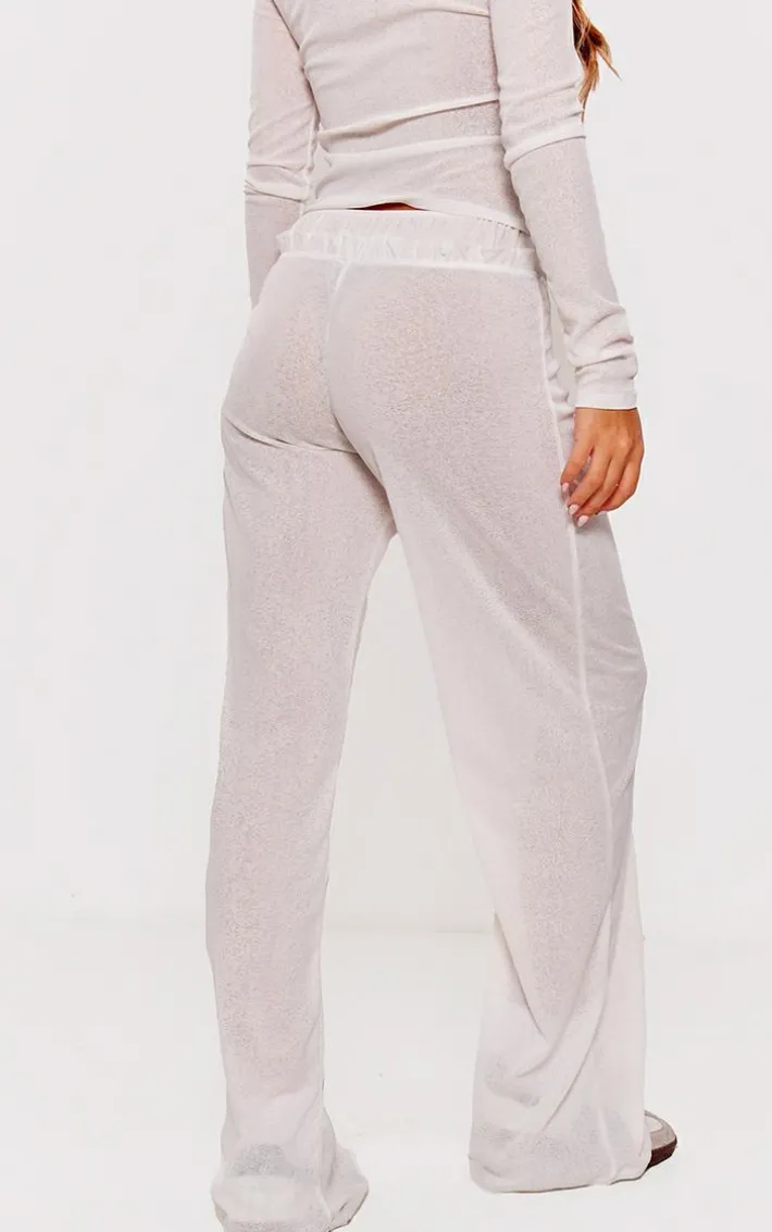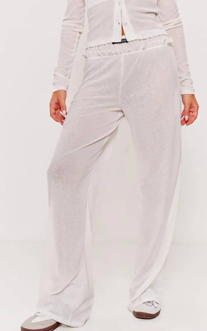 Take your everyday look to the next level with these PrettyLittleThing ivory sheer burnout mesh straight leg pants perfect for your everyday styling and beyond. Brought to you in an ivory sheer burnout mesh material with a straight leg fit, we simply can’tget enough. With It’s versatile style these pants are sure to be your new go-to. Style with the matching top, box-fresh kicks and accessories for a look that we can’tget enough of.