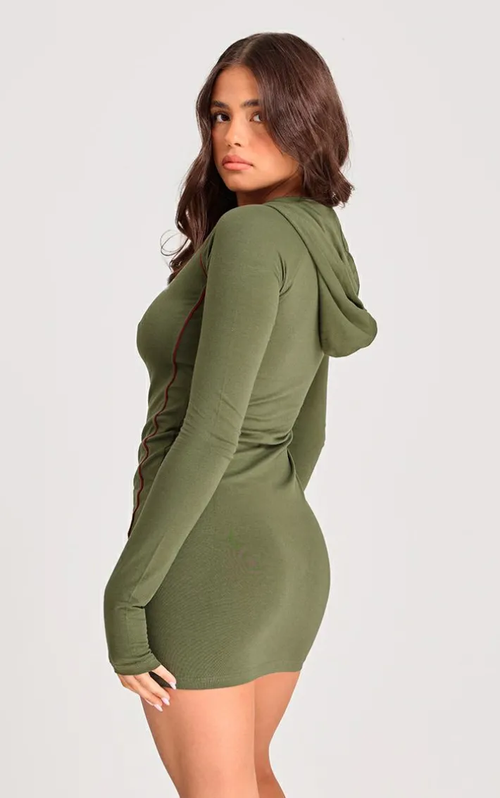 Add a little edge into your outfit of the day with this PrettyLittleThing khaki cotton contrast zip hooded bodycon dress. It is brought to you in a khaki cotton material with contrasting zip detailing and a hooded design, what more could you ask for? Team this bodycon dress with sneakers and some sunglasses for a fresh finish.