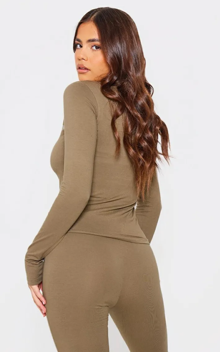 Hit refresh on your off-duty wardrobe this season with this PrettyLittleThing khaki jersey zip through long sleeve top. Brought to you in a khaki jersey material with a ‘PrettyLittleThing’ graphic detail and a zip-up fastening, why wouldn’t you be obsessed? If you’re on the lookout for expanding your casual collection this season, this top is a yes from us. Team with the matching pants, chunky sneakers and your fave accessories for a look like no other.
