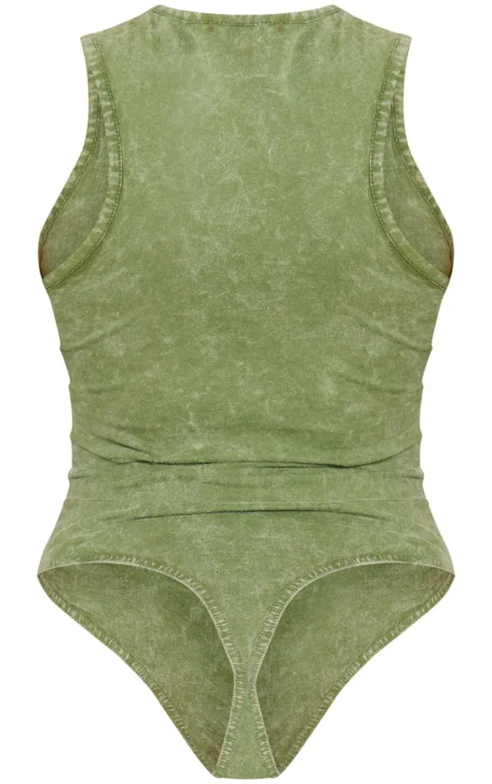 Upgrade your new season wardrobe with this PrettyLittleThing khaki wash racer bodysuit. Brought to you in a khaki wash material with a racer neck design and a ‘PrettyLittleThing’ logo, how can you resist? Keep it casual and team this racer bodysuit with the matching shorts and sneakers for a fool-proof finish.