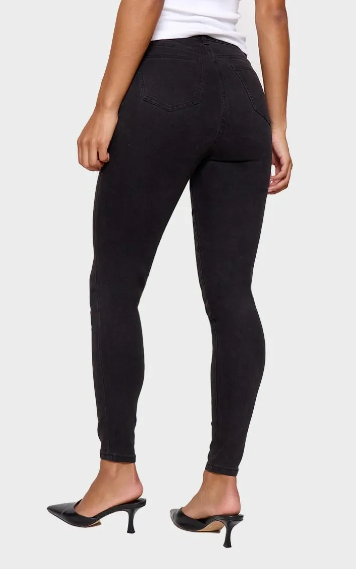 Give your look an edge with these jeans. Featuring a washed black denim material with a skinny fit and a classic 5 pocket design. Style these with a corset top and slip-on heels for a fierce look we are loving.