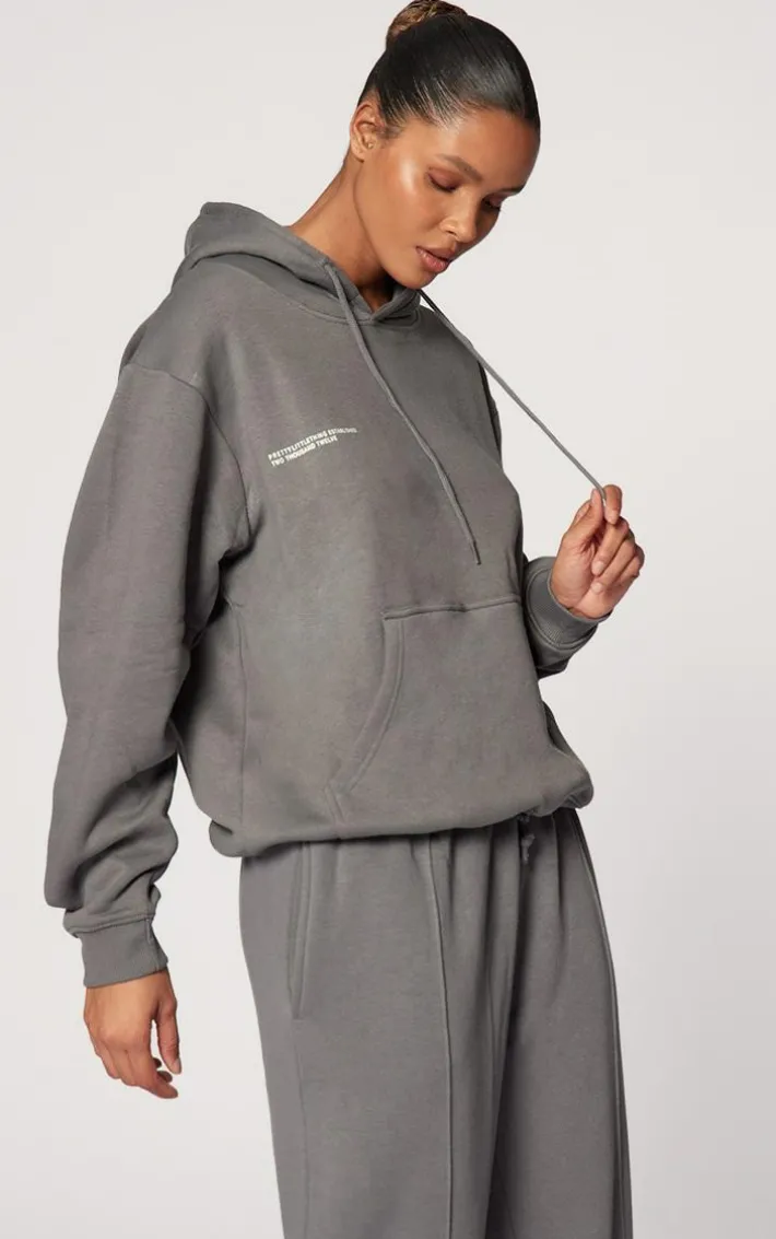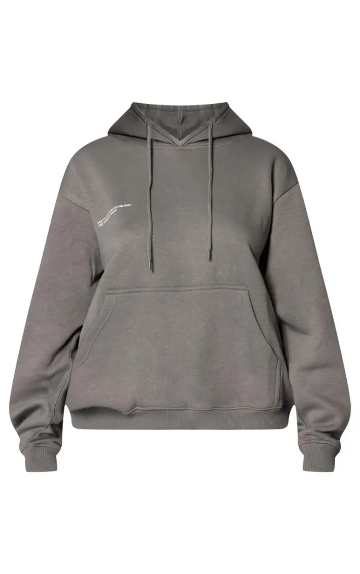 This PrettyLittleThing logo charcoal grey Est 2012 oversized fit hoodie is sure to be a staple in your new season wardrobe. Made from a charcoal grey hue material with long sleeves and ‘PrettyLittleThing’ logo detailing, we’re in love. Wear this oversized hoodie with comfy bottoms and chunky kicks for a vibe we’re obsessed with this season.
