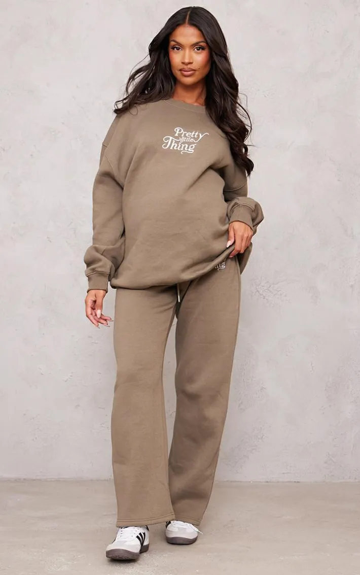 Your new season wardrobe is calling out for these PrettyLittleThing maternity khaki embroidered wide leg sweatpants. Brought to you in a khaki material with an embroidered design, what’s not to love? Its wide leg fit is all you need to feel effortlessly chilled. Team with the matching sweater and a pair of fresh sneakers to finish off the look.